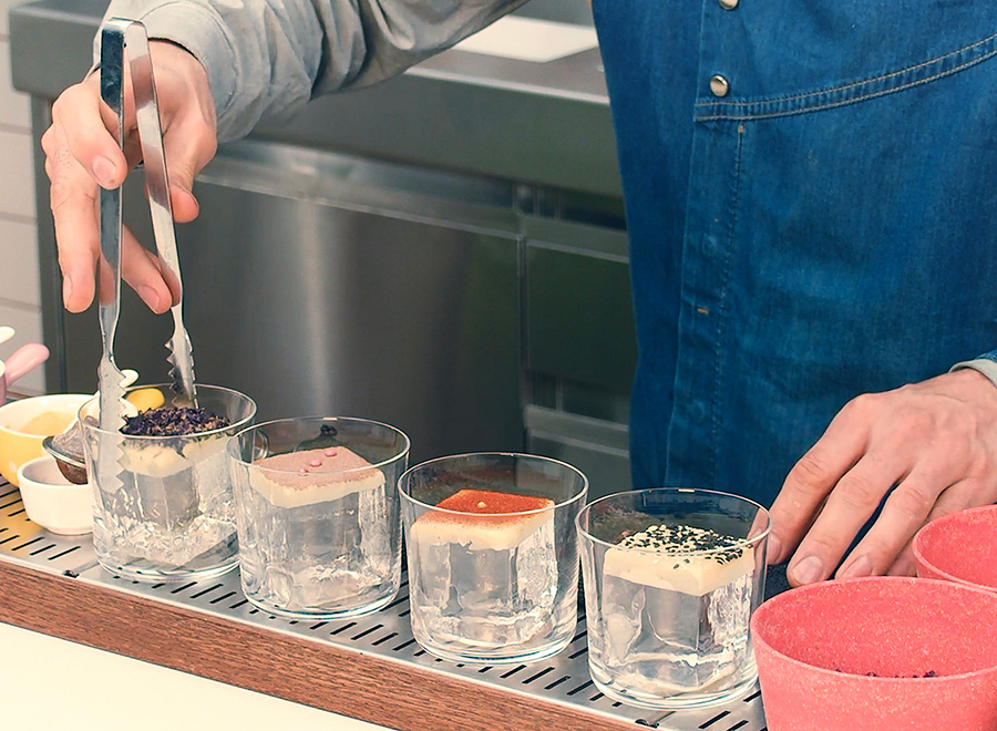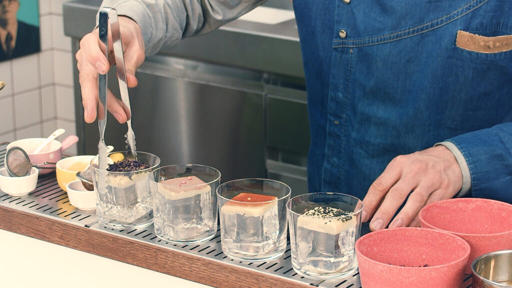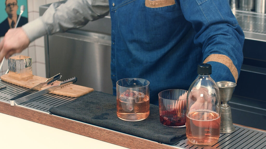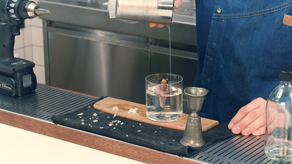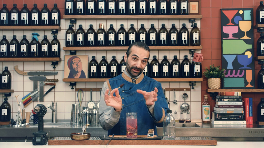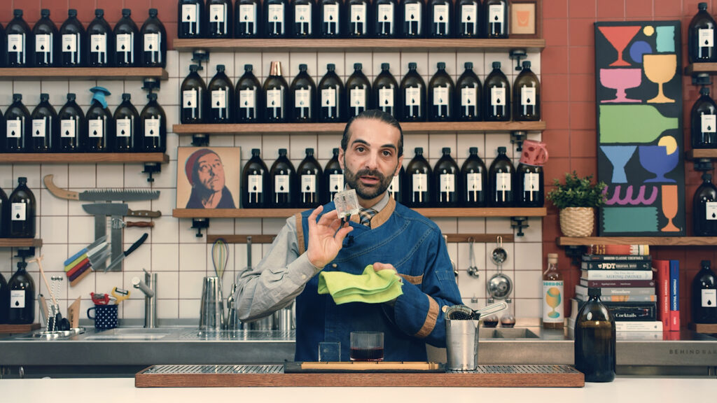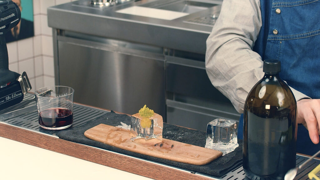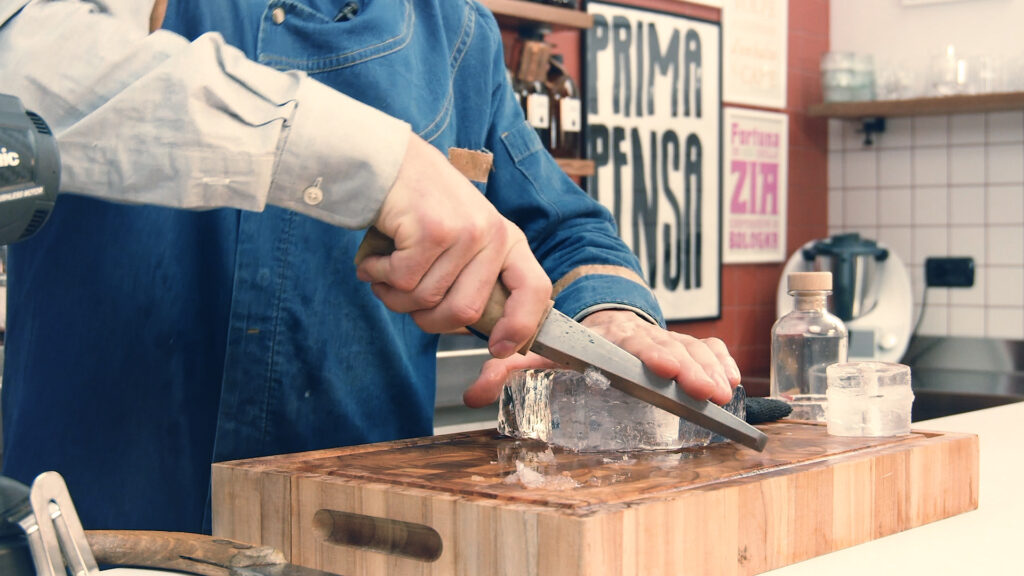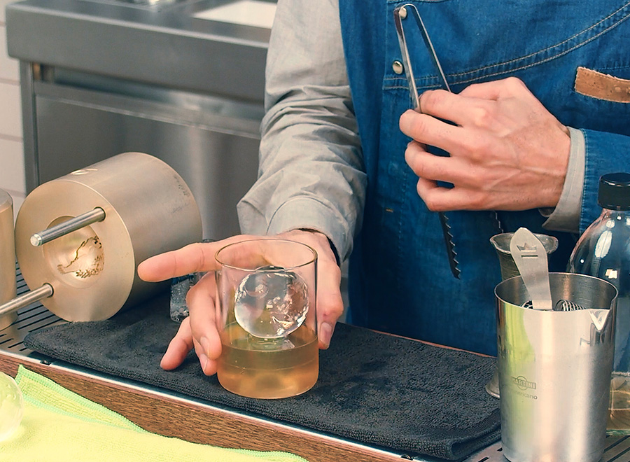 Ognuno dei 20 video che compongono il corso parte da un signature cocktail firmato da Luca, ma in questo caso il drink viene solamente raccontato. Ad essere spiegata step by step è la lavorazione del ghiaccio: non solo raffreddamento e diluizione, ma ingrediente fondamentale e, soprattutto, elemento di presentazione capace di cambiare percezione, atmosfera e lasciare i clienti a bocca aperta.